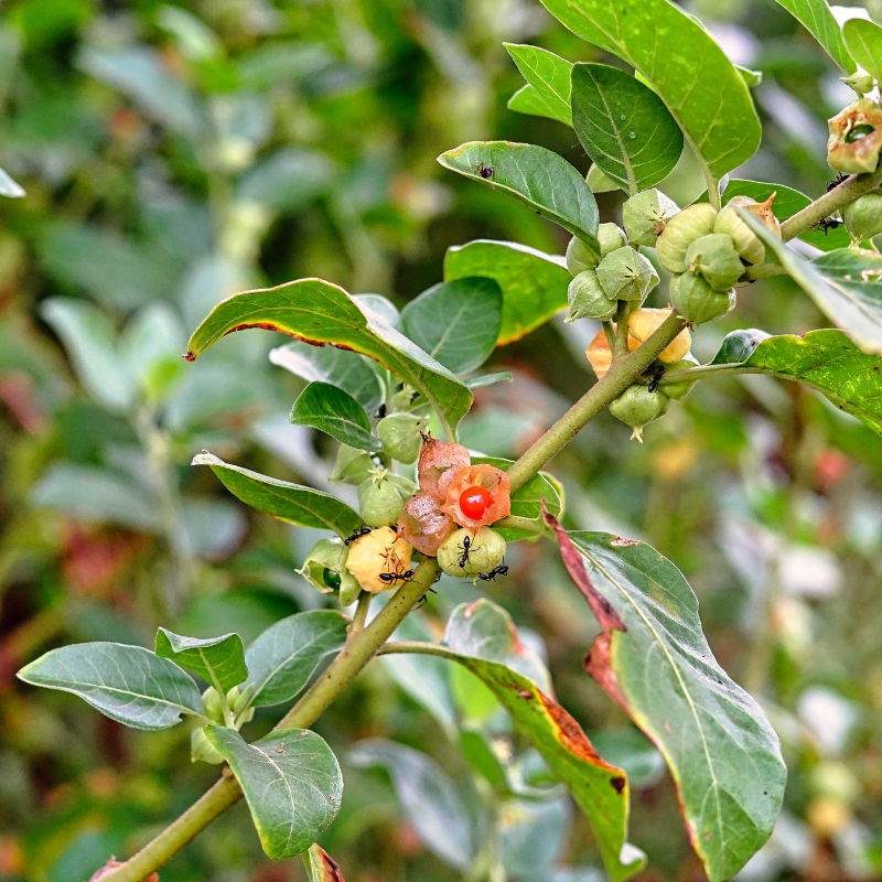 Ašvaganda, též známá jako Indický ženšen (Withania somnifera), je keř ceněný pro svůj kořen, který je bohatým zdrojem vithanolidů a dalších bioaktivních látek. Je jednou z klíčových bylin ajurvédské medicíny, kde je tradičně využívána jako silný adaptogen.