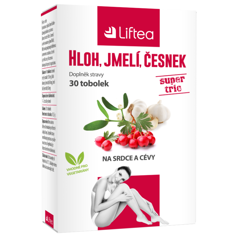 Kombinace extraktů osvědčeného tria - extraktu z hlohu, jmelí a česneku.