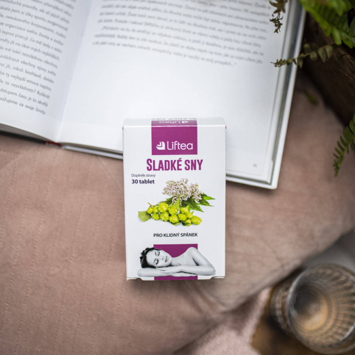 Liftea Sladké sny přináší účinnou podporu v praktické formě tablet s kombinací extraktu z kořene kozlíku lékařského, chmelových šištic a vitaminu B6.